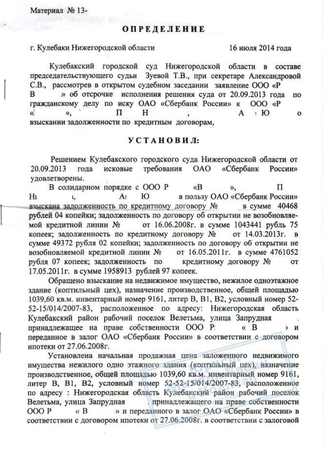 • Кулебакский городской суд предоставил ООО «Р.В.» отсрочку исполнения решения о взыскании задолженности сроком на 8 месяцев.