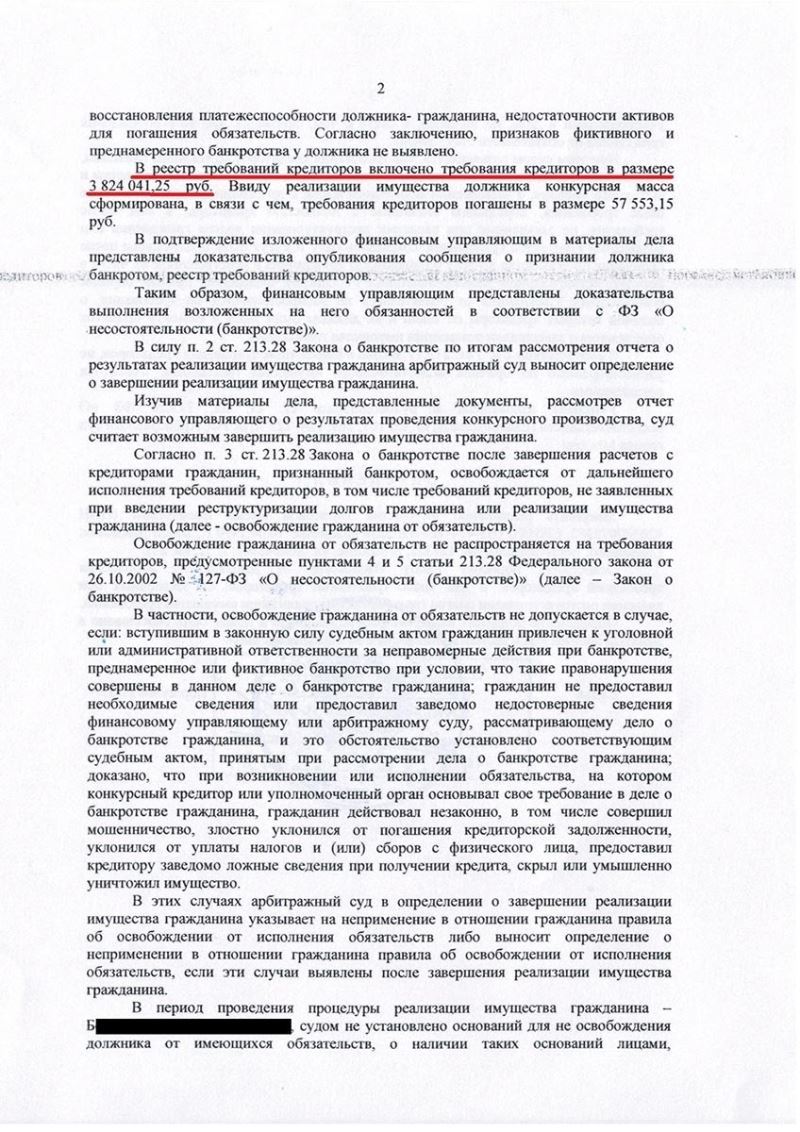 Последствия признания гражданина банкротом