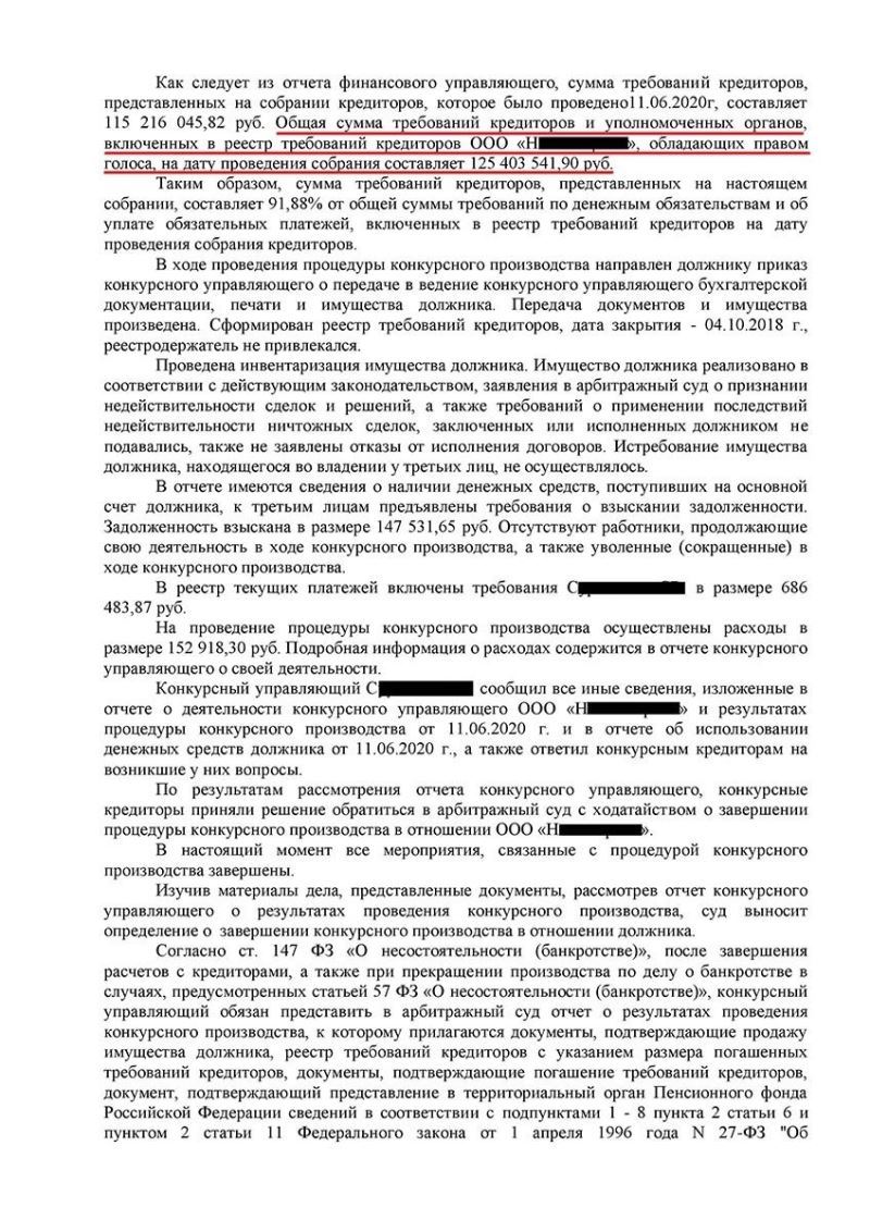 ООО «Н...» имело задолженность перед контрагентами и бюджетом на общую сумму 125 млн. руб., которую невозможно было погасить.