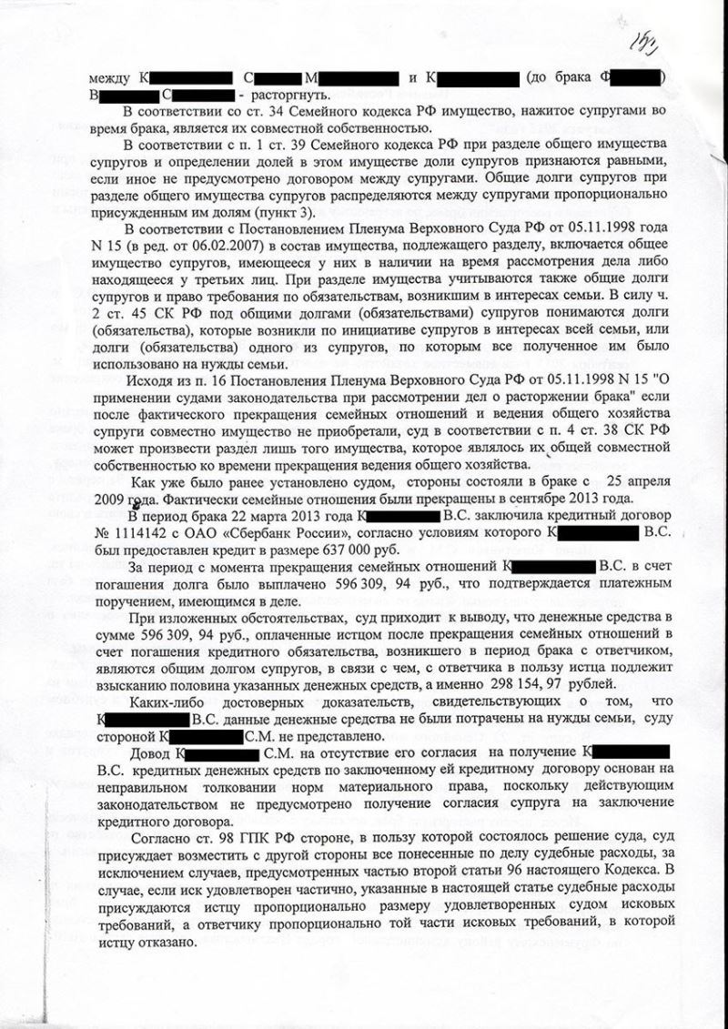 Адвокат ознакомился представленными клиентом материалами и подал в суд встречное исковое заявление о разделе совместно нажитого имущества и взыскании с супруга половина оплаченного клиентом общего долга, то есть 298 154,97 руб.