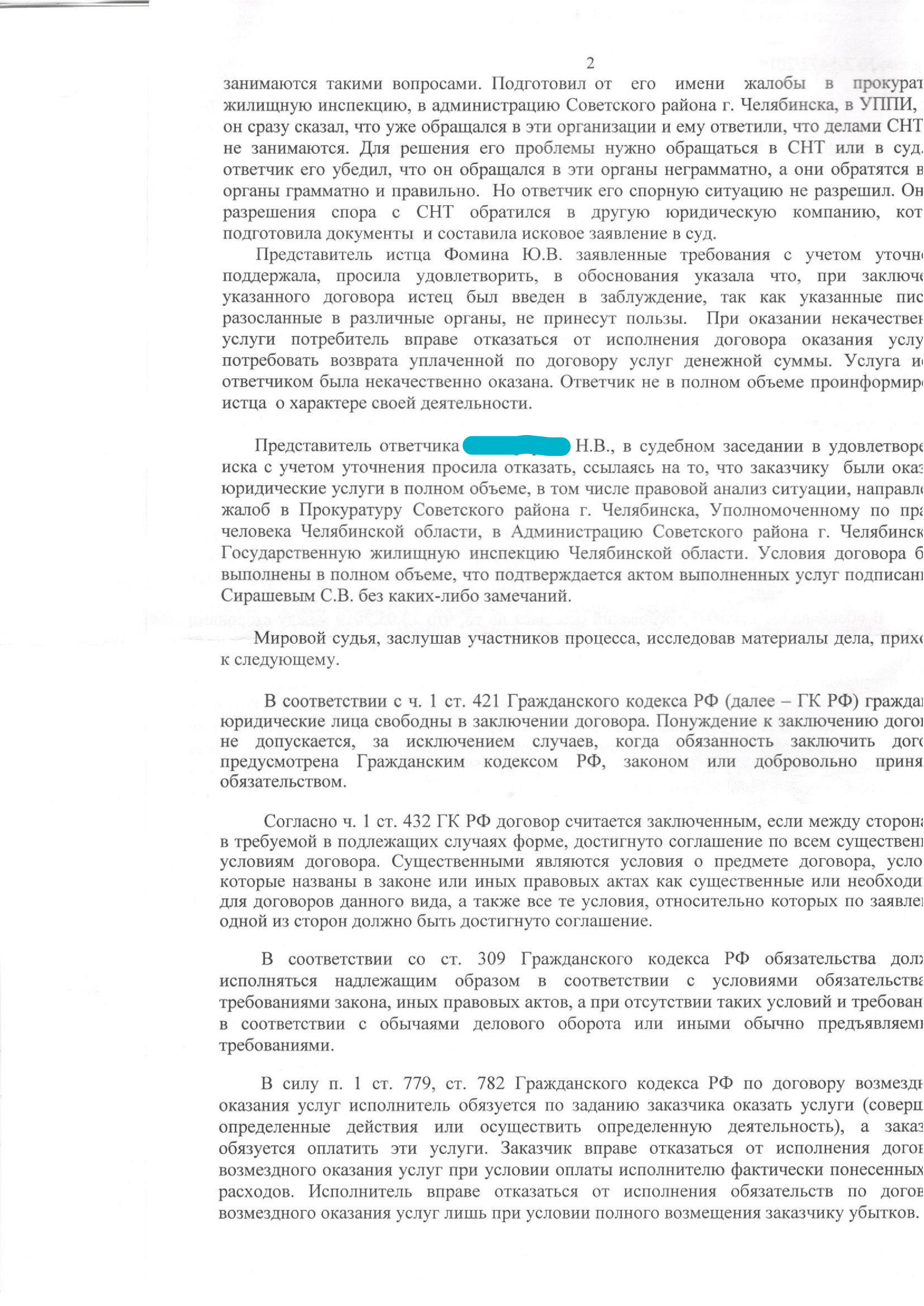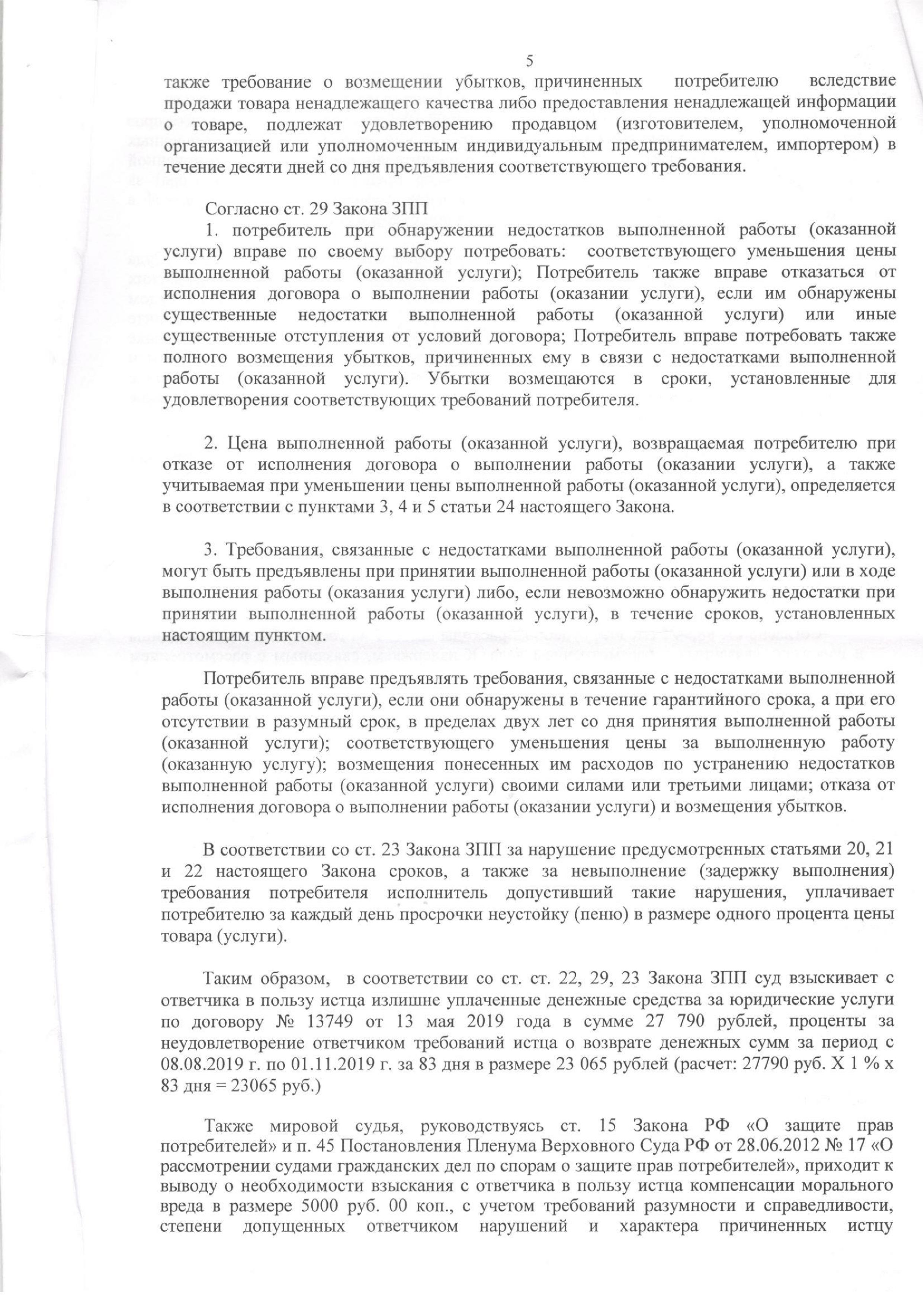 Возврат денежных средств за оказание некачественных юридических услуг