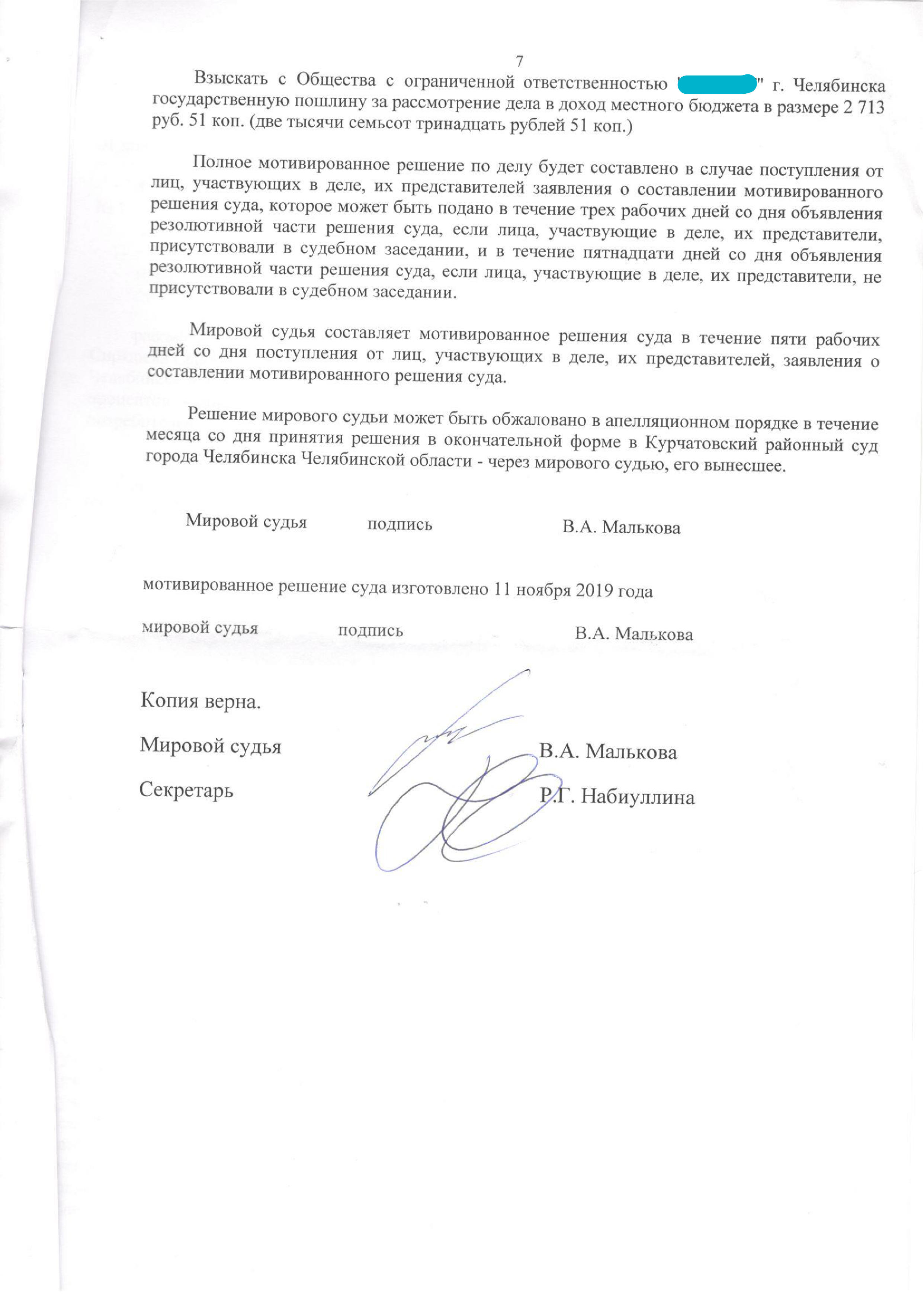 • Удовлетворены требования клиента на сумму
